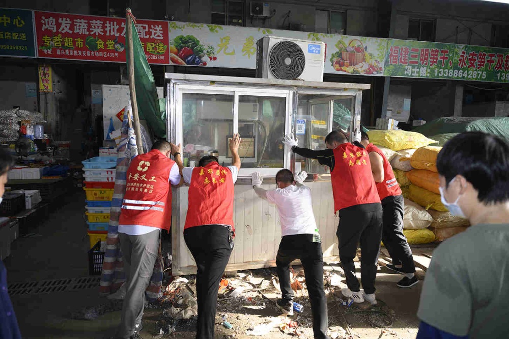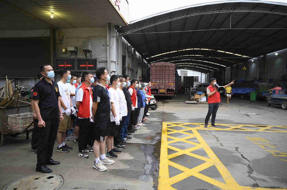 黨員青年突擊隊(duì)在行動(dòng)。面對(duì)市場(chǎng)創(chuàng)建現(xiàn)場(chǎng)整治節(jié)點(diǎn)難點(diǎn)問題,黨員青年突擊隊(duì)隊(duì)員們沖了上來。15日早上6點(diǎn),突擊隊(duì)員一行共48人踴躍參加了此次整治突擊行動(dòng)。