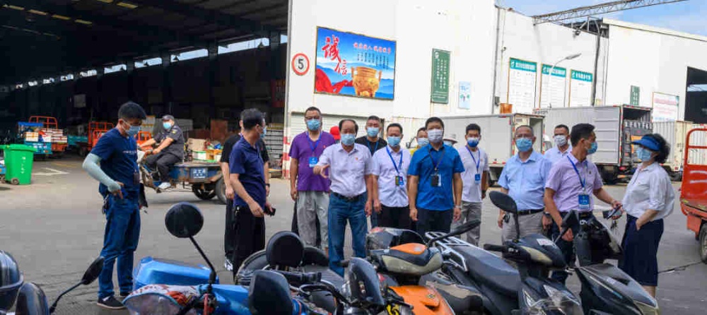 圖為:公司黨總支書記、總經(jīng)理屠春甫,帶領(lǐng)班子檢查市場防暑降溫情況。