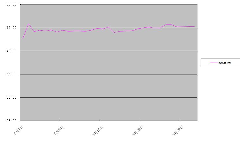 大帶魚、大黃花魚兩種海水魚批發(fā)均價(jià)為44.64元/公斤,環(huán)比上升4.3%,同比上升12.9%。