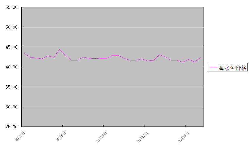 大帶魚、大黃花魚兩種海水魚批發(fā)均價(jià)為42.23元/公斤,環(huán)比下降1.6%,同比上升7.2%。