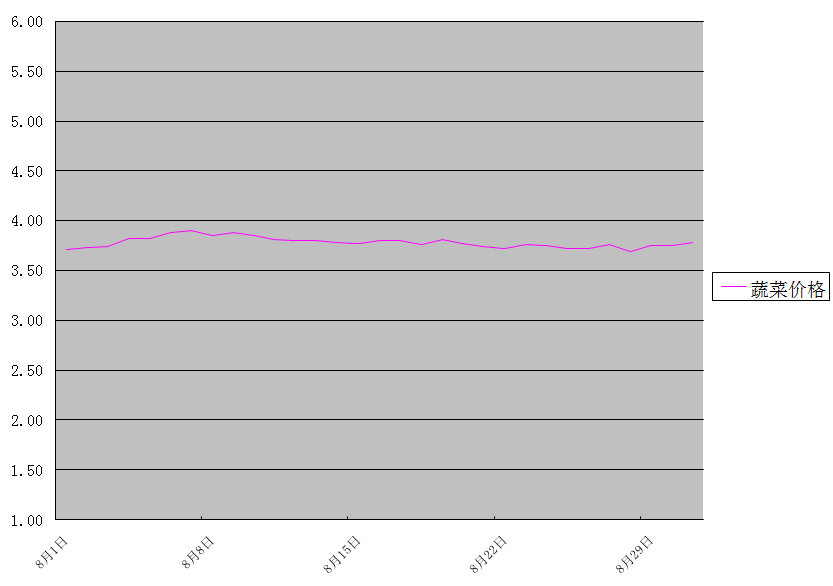 本月蔬菜批發(fā)均價(jià)為3.78元/公斤,環(huán)比上升15.9%,同比上升1.9%。