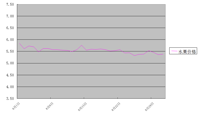 本月鴨梨、富士蘋果、巨峰葡萄、香蕉、菠蘿和西瓜6種水果批發(fā)均價(jià)為5.54元/公斤,環(huán)比下降4.4%,同比上升5.1%。來源:農(nóng)業(yè)農(nóng)村部信息中心
